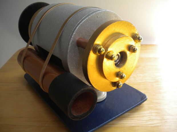 Para el registro aquí antes y después de tiros de la CTT w/algunas modificaciones de menor importancia. Las tuercas hexagonales 12 asegurar los montajes del cojinete fueron reemplazados w/matching latón tuercas bellota para mejorar el aspecto general del proyecto. Además, me resbalé con un tubo de cartón sobre el final del múltiple de inyección (pintado de negro plano). El apoyo fue substituido por un patrón de rueda hipnótico más interesante Obtenido de una búsqueda en Google. Esto fue pegado a un disco descartado, rocía acrílico claro y luego montados en el rotor eje w/brass bellota y tuercas hexagonales.