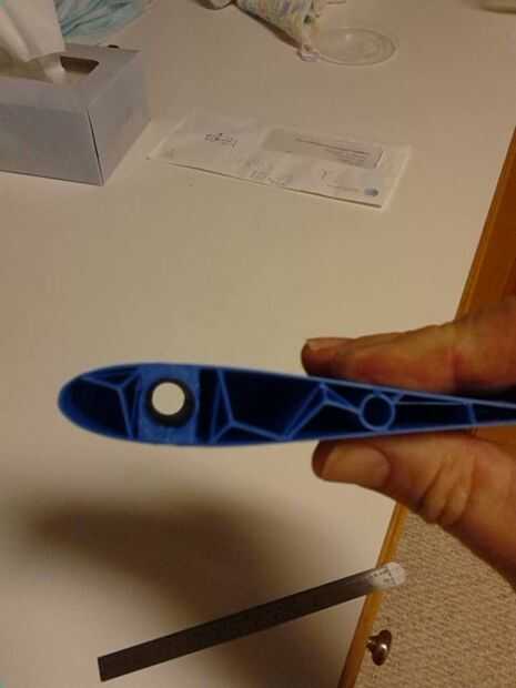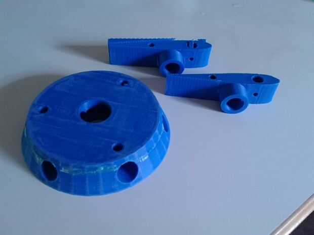 Usted debe imprimir el total del seis "unions.stl" de tres láminas, dos por hoja. Cada hoja se compone de tres archivos de "bladex3.stl". Ver fig (X). Recuerde ajustar el relleno y otros parámetros que las piezas impresas tan ligeras como sea posible. Esto puede tomar algunos intentos pero producirá una buena turbina de trabajo. Si usted no está familiarizado con esto, no te preocupes los archivos todavía se imprimirán. Las impresiones serán más pesadas y más fuertes por lo tanto es un compromiso entre rendimiento y resistencia. Podía perforar hacia fuera las hojas, pero esto es mucho tiempo. Los sindicatos son el ala dos pequeñas estructuras en la imagen superior. (el centro es la pieza más grande). Puede que desee imprimir el cubo inferior relleno superior para que sea muy fuerte.