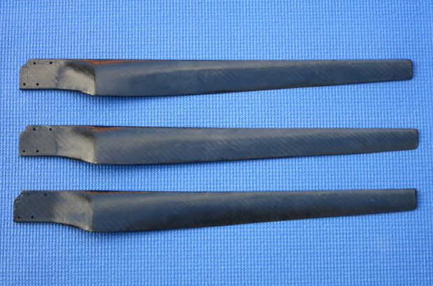 Me ha pasado que algunas tela de carbono de otro proyecto pero podría utilizar tela de vidrio con resina de epoxy, aunque en ese caso una capa no sería suficiente. Corté mi jut de tela de carbono lo suficientemente grande como para poder doblarlo sobre la hoja con un poco de extra. Pintar la hoja con epoxy, apliqué el paño y algunos pintados epoxi más en el exterior de la tela, lo suficiente como para saturarla. No desea que el epoxi a ser goteras y no desea rellenar en los 4 orificios de montaje en la hoja o bien. Cuando esté listo, puse el disco entero en una bolsa de polietileno improvisado y tiró un vacío en él con un compresor de nevera repurposed. Dejé la hoja bolsa al sol, con el compresor (bomba de vacío) para un par de horas, hasta que el epoxy se había fijado. Es muy importante para asegurarse de que la hoja esté recto antes de los sistemas de epoxy, si no que tienes una hoja doblada que no puede ser enderezada. Después de que la hoja sale de la bolsa para vacío que requerirá un poco de lijar y pintar con epoxi, pero esta no vez requiere de bolsa de la aspiradora. Asegúrese de que usar una mascarilla al lijar materiales compuestos. Los orificios de montaje de la cuchilla deben ser reabierto por la perforación a través de la piel de refuerzo. Utilizar el cubo 3D impreso para guiar la broca.