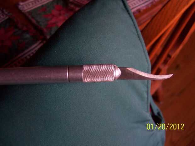 elegí una hoja curva tras experimentar con diversas láminas. Funciono mejor en la parte flexible de la botella de plástico. Cortar sólo los laterales de las aletas de la turbina y el lado largo de la forma de pirámide topless. Ver fotos. Este trabajo muy tedioso. No cortar o empujar la hoja, suavemente penetrar el plástico y dibujar la hoja fácilmente a lo largo de las líneas. Cuidado con estas cuchillas pueden deslizarse y cortar profundamente. Puede usar guantes de cuero grueso si te gusta. Scizzors agudo muy puntiagudos podrían funcionar pero no he probado ninguno todavía. Esto no es para que los niños que hacer! Por favor no intente esto a menos que tenga las habilidades y la destreza de la mano con estos cuchillos de artesanos de tipo hoja de afeitar. Las botellas de la curva, mover y crujido. Muy difícil de cortar. Así que cuidado con esto!!!