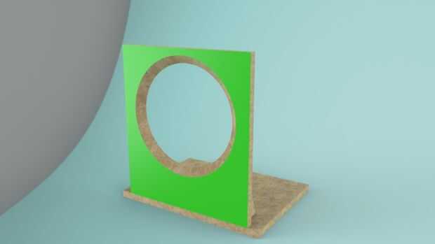 Tomar otro tablero de MDF. (aprox. 440 x 400 x 20 mm). En esto que desea eliminar un círculo (no tire)). El círculo debe tener un diámetro levemente más grande que el más pequeño lado del cubo. (por lo que puede ser pegado en el borde del círculo)