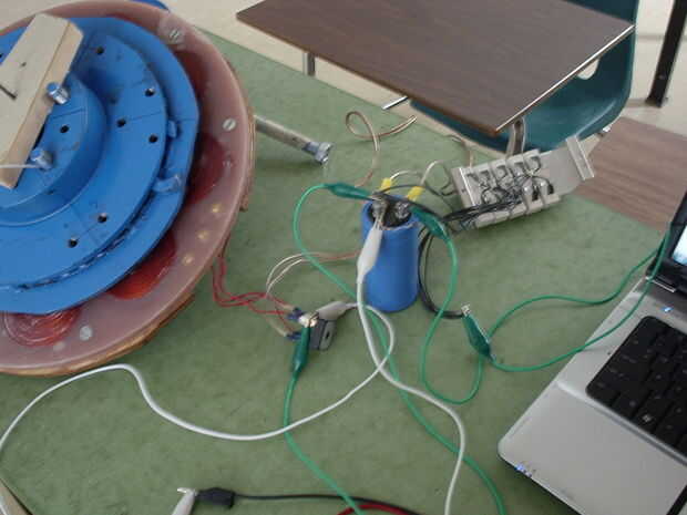 Trató de utilizar el equipo en mi laboratorio de física y en Datastudio para medir la frecuencia de la corriente alterna, entonces traté de trabajar hacia atrás para calcular la RPM del generador. Si recuerdo mal, tuve que dividir por 6 para obtener los valores de RPM. Este método, sin embargo... era extremadamente inexactos. Me seguí haciendo las lecturas que fueron muy apagadas. A pesar de los gráficos bastante que el equipo estaba generando, no recomendaría tratando de usar este método para la medición de RPM.