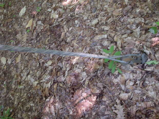 El alambre de individuo utilizamos fue segunda mano de un instalador de poste de teléfono local. Es lo mismo ves arriostrado por encuestas telefónicas en todo el lugar. Creo que es técnicamente 3/16 de pulgada de grosor, pero no estoy seguro. El cable es excesiva para mi torre, pero lo conseguimos gratis así que es mejor estar seguro. No utilice sujetacables tradicionales en el alambre. Vino con un montón de piezas de gancho twist que envuelve el alambre y luego retorcido en. Fueron hechos para trabajar específicamente con este tamaño y tipo de cable. Mira las fotos para tener una mejor idea de lo que yo.