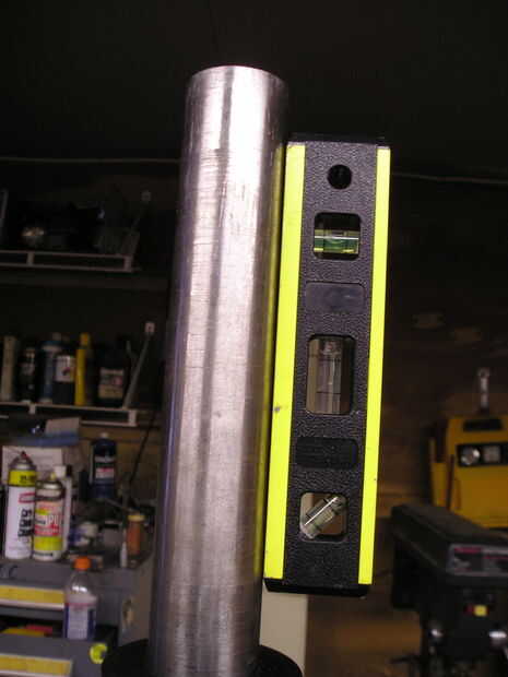 Entonces tomé un trozo de tubo de Cédula 80 para una tienda de máquina y volvió hacia abajo en el torno así actuaría bien como el cojinete del desvío. Había nivelada en la torre y coloca algunos tornillos en así que podría soldar con autógena en el lugar. Esta pieza es importante porque, si es flojo, la turbina entera podría caer o las hojas podrían golpear la torre! HUY!
