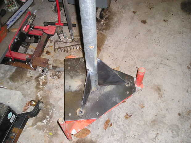 Tuve la suerte de recibir una torre de celosía gratis 30 pies de un aeropuerto. Fue utilizado una vez para un faro giratorio y debe ser lo suficientemente fuerte como para mi pequeña turbina de viento. Tuve que añadir a la parte superior de la misma (5 pies) para acoplar la turbina de viento con suficiente espacio para las hojas moverse cuando la máquina furls. Para soporte, soldado con autógena los escudetes sobre un trozo de tubo de 2 pulgadas y adjunta a la parte superior de la torre.