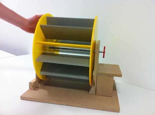 Después de insering los cojinetes en los agujeros, luego colocaron el eje en los cojinetes y entonces utilizaron pegamento PVA para madera y clavos para sujetar a la base.