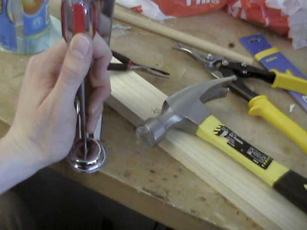 -con un martillo, golpee suavemente cada extremo con un pequeño clavo Romo seguido por un destornillador de cabeza phillips