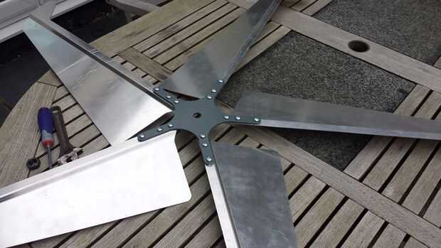 6) el siguiente paso es fijar las palas de metal en el centro. El cubo es la parte central de las turbinas de viento, que les une. El centro necesita muy fuerte, esto evitará que las cuchillas de conexión, si el centro es débil, las hojas pueden salir o no hacer girar correctamente que significa una pérdida de energía producida. El cubo debe ser hecho de un material fuerte, tales como el metal. El orificio central del cubo debe ser capaz de encajar en el eje del generador. Usted necesitará utilizar los tornillos de tamaño adecuados para conectar las palas al eje.
