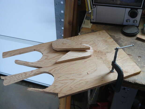 Te recomiendo que corte una plantilla de cartón y utilizar para dibujar seis imágenes de ella en madera contrachapada de media pulgada. Aquí está cómo dibujarlo: