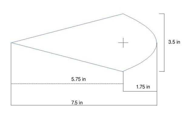 5. con un compás, dibuja un medio círculo de 1.75" en la parte superior de esa marca. Deben intersectarse los bordes laterales y el borde superior.