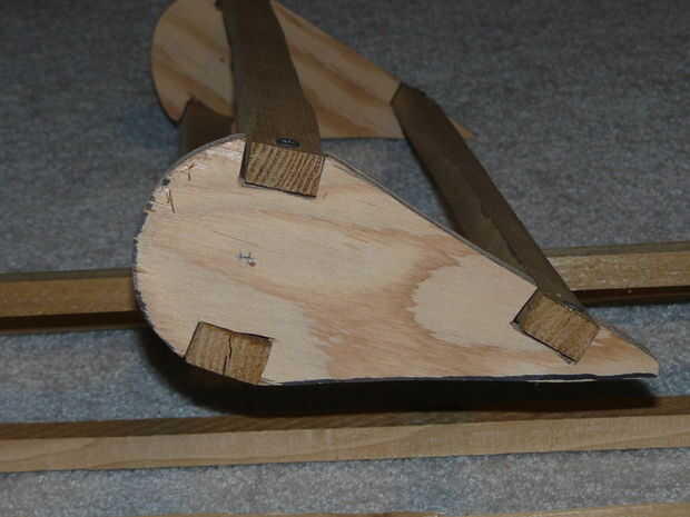 Con una costilla en su lugar, perfore previamente un agujero a través de la costilla y en la madera contrachapada. Atornille la costilla en su lugar con un tornillo de 1" de madera. Opcionalmente podría pegar estas costillas en su lugar pero esto no es necesario a menos que usted está construyendo una turbina que realmente va a utilizar fuera de para producir electricidad.