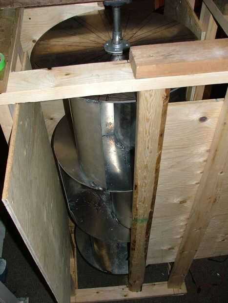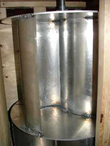 después de las hojas a los discos de montaje en 3 secciones y cada sección tiene 3 láminas offset uno encima del otro por 60 grados, luego insertar el eje en el centro y ajustado para la distancia de mi configuración, 4" de fondo y el resto de la habitación izquierda fpr superior mi generador (paso posterior).