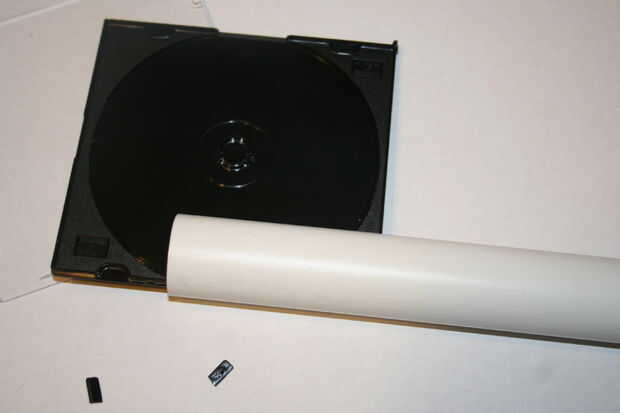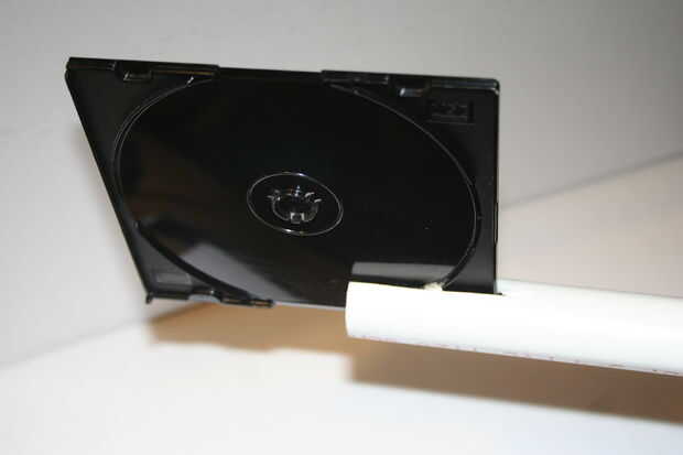 Conecte la caja del CD a la tubería de 1 "x 1'. Deslice el corte del listón.