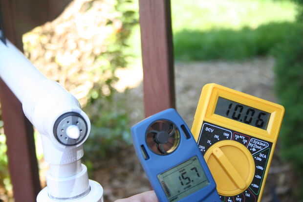 esto fue construida como una alondra, un caprichoso intento de recuperar algunos de los cientos de dólares gastan en aire acondicionado cada año. Es una turbina eólica accionada por el ventilador del compresor de mi aparato de aire acondicionado.Pero