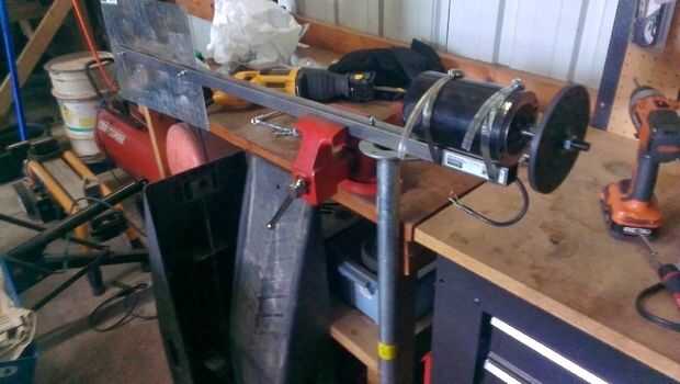 Perforar un tercer agujero en el centro de la brida para la cuerda ir por el palo. Enrosque el cable que viene del motor a través de los orificios que ha perforado y conecte el motor a la tubería mediante abrazaderas grandes (Asegúrese de que son muy ajustados).