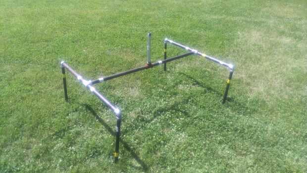 Una vez que todo está en el suelo, habrá un acople macho sobresale no muy lejos de la tierra. El polo principal de la turbina también tiene un macho, así que poner un tee hembra de 1" entre los dos. Esto sirve un doble propósito ya que también es donde sale el cable que va desde el generador por el palo.