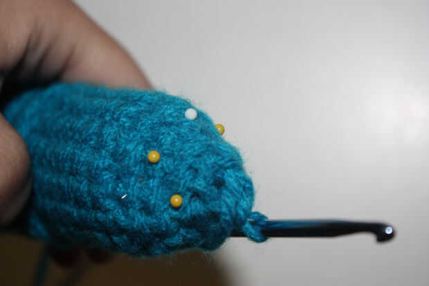 RND 16: Sc 5, dec, dec 2, sc3tog, sc 8 (17)
