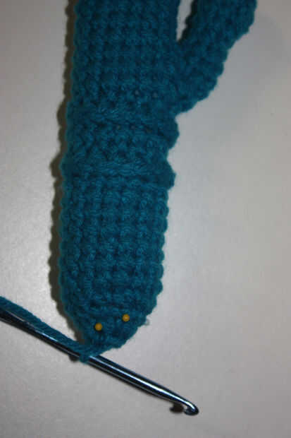 RND 14: Sc 8. Sostenga B dedo junto a su trabajo y sc 6 dedo b sc 8 en la mano (22)