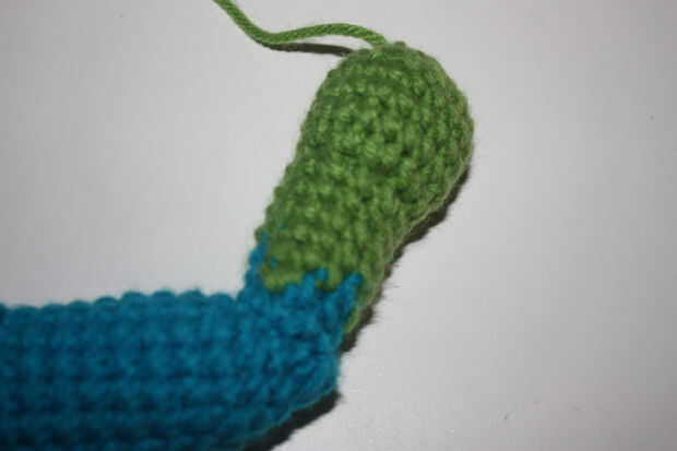 NúmAleat 2: [Usando el hilado azul, sc 2. Uso de hilo verde, inc] alrededor (12)