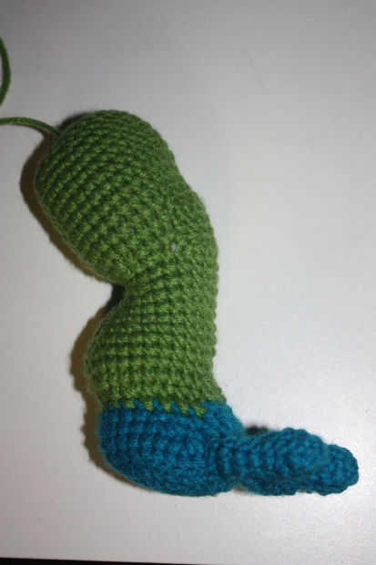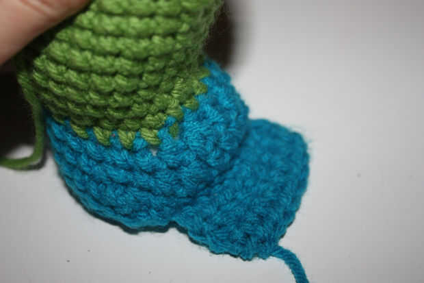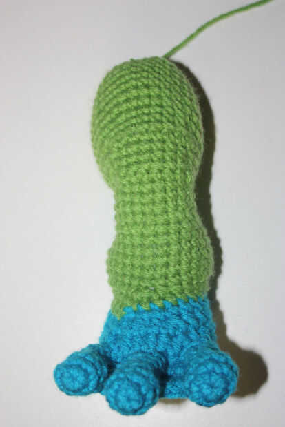 * vas a hacer ahora las correas para los pies de Murky. La rnd siguiente llama para que colocar un marcador, que será donde seguir subiendo el pie después de la cinta.