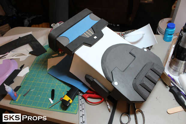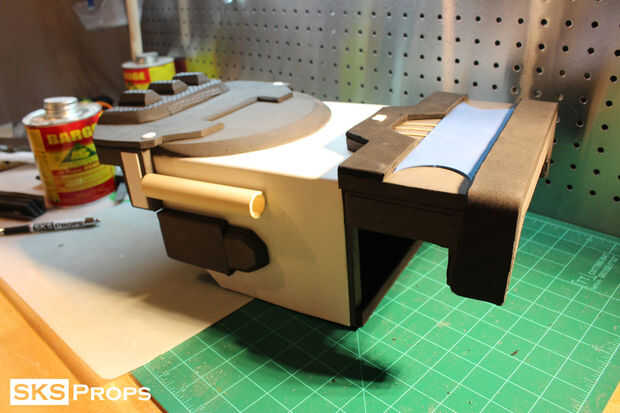 Aquí es donde ser un prop / acaparador entra en juego. Tengo bolsas llenas de las probabilidades y termina que lucen aseada y actuar como detalles adicionales sobre los proyectos como este. Se puede saber por las fotos que usar tubo PVC, muebles tachuelas, tacos de madera, arandelas, botones y push pins para replicar la versión de cine.