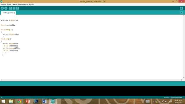 El programa esta completamente para el servo dar 170° cada hora es lo mismo cada 3.600.000 millones de Sra. y regrese a 0° en el mismo tiempo.