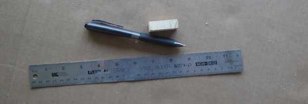 Tomar la pieza de madera de 1.5 pulgadas y coloque la marca de.5 pulgadas en cualquier esquina. Gire la regla usando la marca de.5 pulgadas como el centro de rotación. Cuando la marca de 0 pulgadas alcance el lado del rectángulo de madera debe tener un triángulo. la marca y corte.