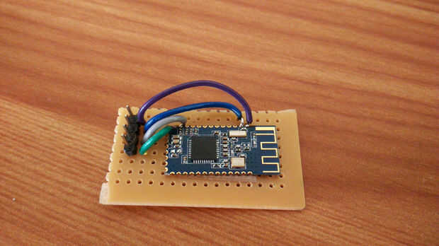 Lo primero que tienes que hacer es soldar el módulo sobre un PCB de propósito general / Junta Directiva matriz / punto de junta. Puede utilizar los cables terminando así en los encabezados de berg (hombres o mujeres), si funciona para usted, pero el PCB sirve como base para el arreglo. Desglose los siguientes cuatro señales de la CC2541 base de HM-10 Bluetooth Smart Transceiver en patillas.