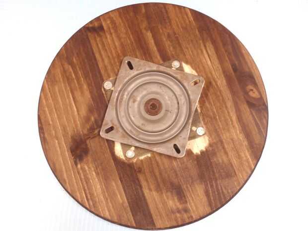 2. Atornille la placa giratoria en el centro del disco de madera.