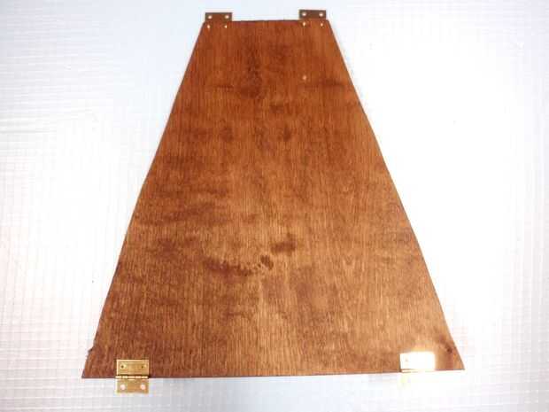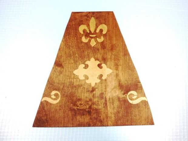 2. utilizando la plantilla de papel, trace y corte 4 paneles forman el tablero de abedul 1/4".