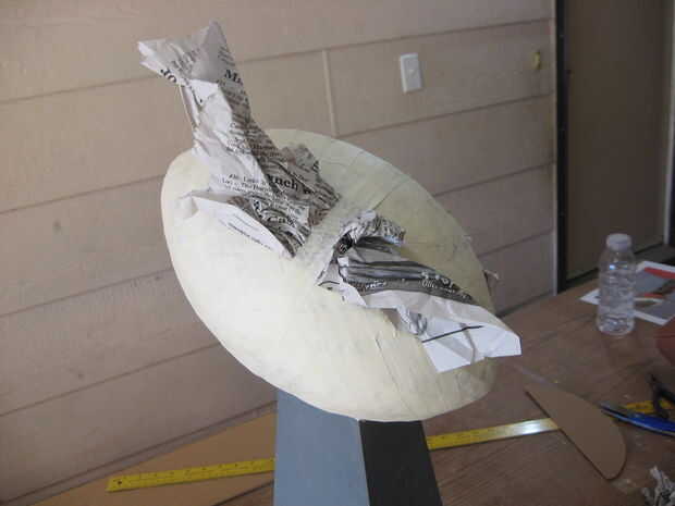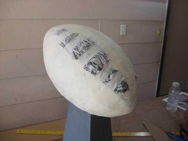 Luego se agregaron muchas capas adicionales de cinta. Estirar los trozos de cinta de enmascarar un poco como ponerlos en ayuda a alisar y apretar la forma.
