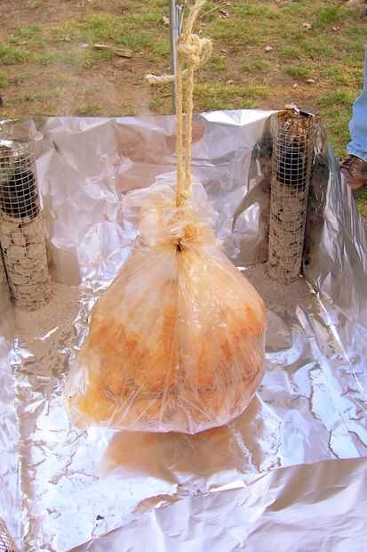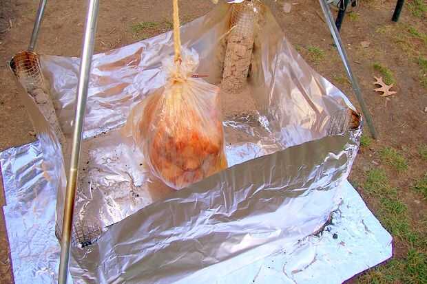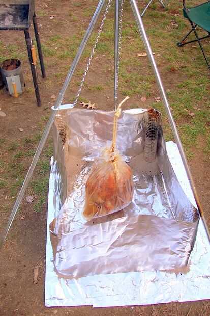 El pavo debe ser 3-4" de la tierra y centrado entre las torres de 4 carbón.