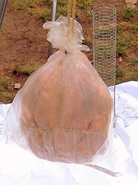 La cuerda en los lados debe ser por ahora suficiente para sólo capturar la parte superior de las alas. Desea la cuerda para sostener las alas contra el cuerpo, pero no se coloca demasiado bajo en el ave si la cuerda está demasiado abajo en el ala, el pájaro podría ser más pesada y podría rodar fuera del nudo.