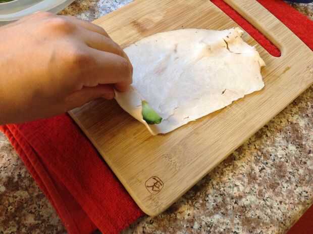 Una vez haya hecho su pavo en la Junta pone una rodaja de pepino hacia uno de los extremos y comenzar a rodar.
