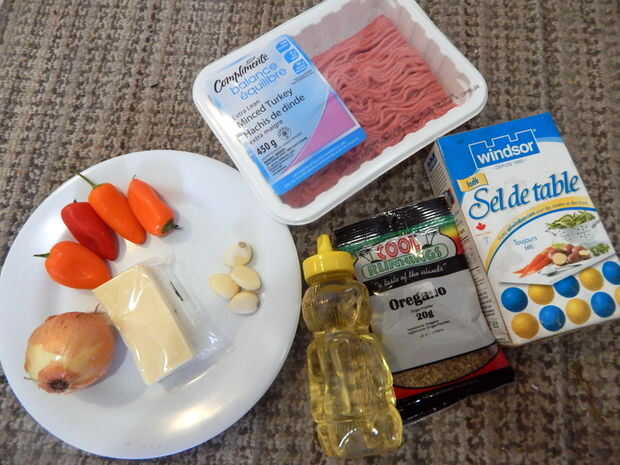 en realidad empecé con la receta en la parte posterior de la bolsa de hamburguesas de pavo he comprado, pero que era básicamente sólo para la mezcla de condimento para tacos con crema agria para una extensión en una hamburguesa de otra manera llano T