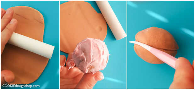Tome una bola de "Piel" fondant, rodar en un círculo de 1/8" de espesor (de...).