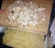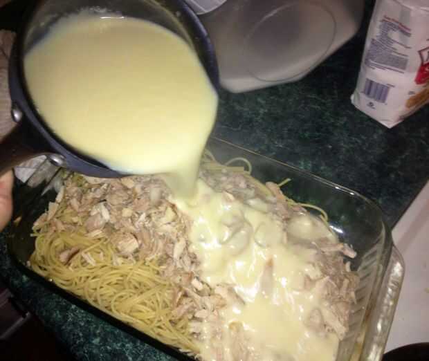 - Mezclar la mezcla de caldo con el pavo y los espaguetis.