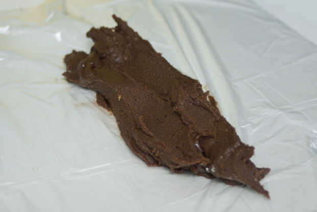 Divida la mezcla en un inicio de sesión se aferra abrigo o una bolsa de plástico y ruede para arriba firmemente, atar los extremos.