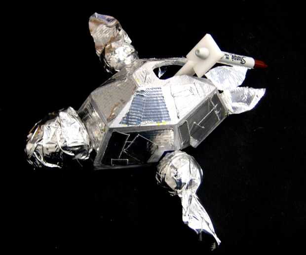 Originalmente habíamos creado un sostenedor de la pluma, como puede verse en la tortuga de plata. Sin embargo, encontramos que una solución mucho más simple solo fue colocar un sharpie mini al servo. Para ello, modificamos la tapa de la sharpie de la misma manera habíamos modificado las ruedas y conectado al servo, como puede verse en la tortuga negra. Esto también es conveniente cuando es tiempo de almacenamiento.