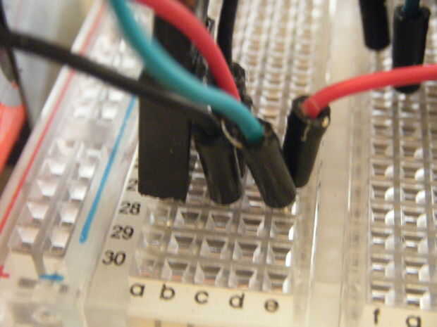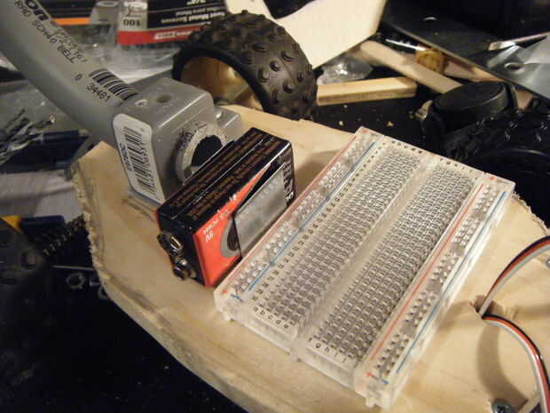 Conecte conductores de rojo del motor servo de la izquierda y la derecha el carril rojo y negro lleva al carril azul de la placa.