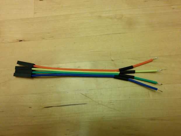 4 pelar los cables de sus puentes de tablero (con los extremos femeninos), doblar a la mitad y clip en el centro.
