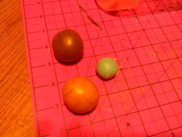 Mezclar los colores. No puedo darle a una guía definida como usé pintura, dos clases de arcilla polimérica y un montón de ensayo y error. Ir a un marrón oscuro, humeante. Un medio azul con un toque de verde y un color bronce cobrizo con arcilla metálica (o polvo de brillo añadido, si tienes alguna).