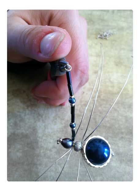 Cuando termine rebordeando una pierna, recorte el exceso de cable con sus tijeras para alambre. Deje suficiente cable a lazo una vez alrededor. Si el cable es bastante delgado y su agujero de grano lo suficientemente grande, es posible que pueda a pase el extremo del alambre hacia el talón. También puede ser creativo con los extremos de la pata y crear una espiral como hiciste en el paso 5.