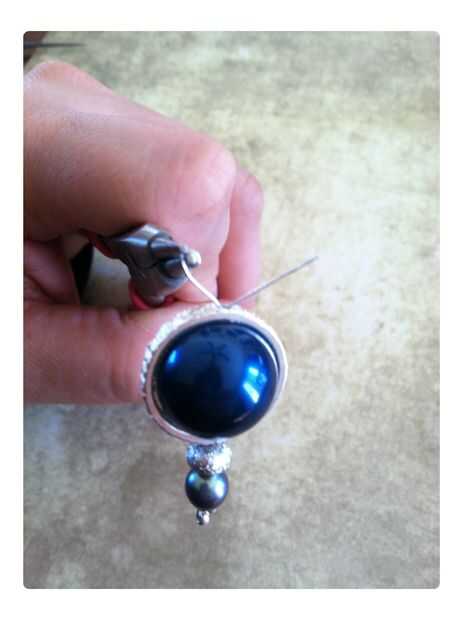 Una vez han roscado sus bolas de 3 cuerpo en el cable, usar tus tijeras de alambre para acortar el resto de las piezas de dos hilos, dejando aproximadamente 1/4 pulgadas de alambre. Continuación, utilice sus Alicates curva el alambre en forma de bucle.