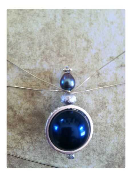 Tomando dos hilos a la vez, envolver los cables primero en la parte superior de su cuenta de centro, llevando el alambre longitudes hacia alrededor del frente, luego en la parte inferior de tu cuenta de centro de la misma manera. La parte posterior de tu araña parecerá la imagen.