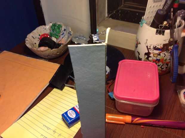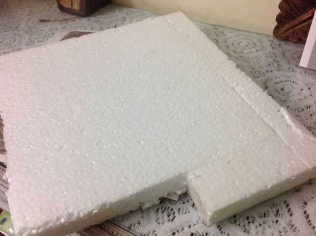 Estas dos piezas de mountboard se insertan en las ranuras en la espuma de poliestireno, perpendicular entre sí y la espuma de poliestireno, como se muestra en las fotos anteriores.