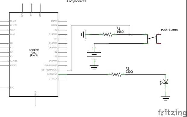 La imagen cargada muestra la resistencia de pull-down esquemático desarrollada usando Fritzing.