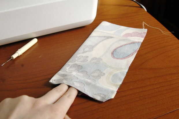 Paso 5: tiempo para la guarnición.  Doblar a la tela de la guarnición en la mitad, derecho contra derecho.  Coser a lo largo del lado largo, con un margen de costura de 1/4 de pulgada.  Coser a lo largo de 1 lado corto, pero deja una pequeña abertura. (valor de unos dos dedos)