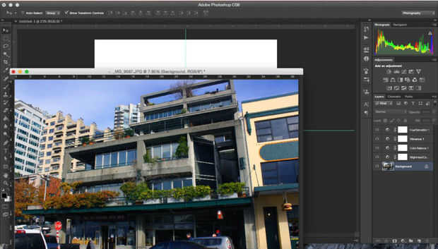 Ahora simplemente arrastre sobre la foto previamente editada desde su ventana a la lona en blanco utilizando la herramienta mover. Asegúrese de que el programa transforma controles casilla de verificación.