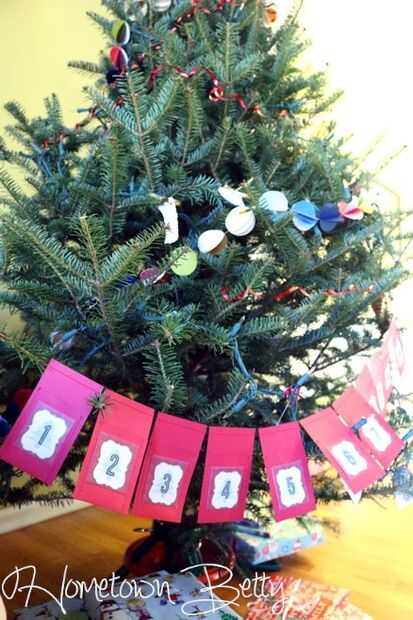 Desnudo árbol de Navidad + calendario de Adviento de papel = una decoración navideña nuevo